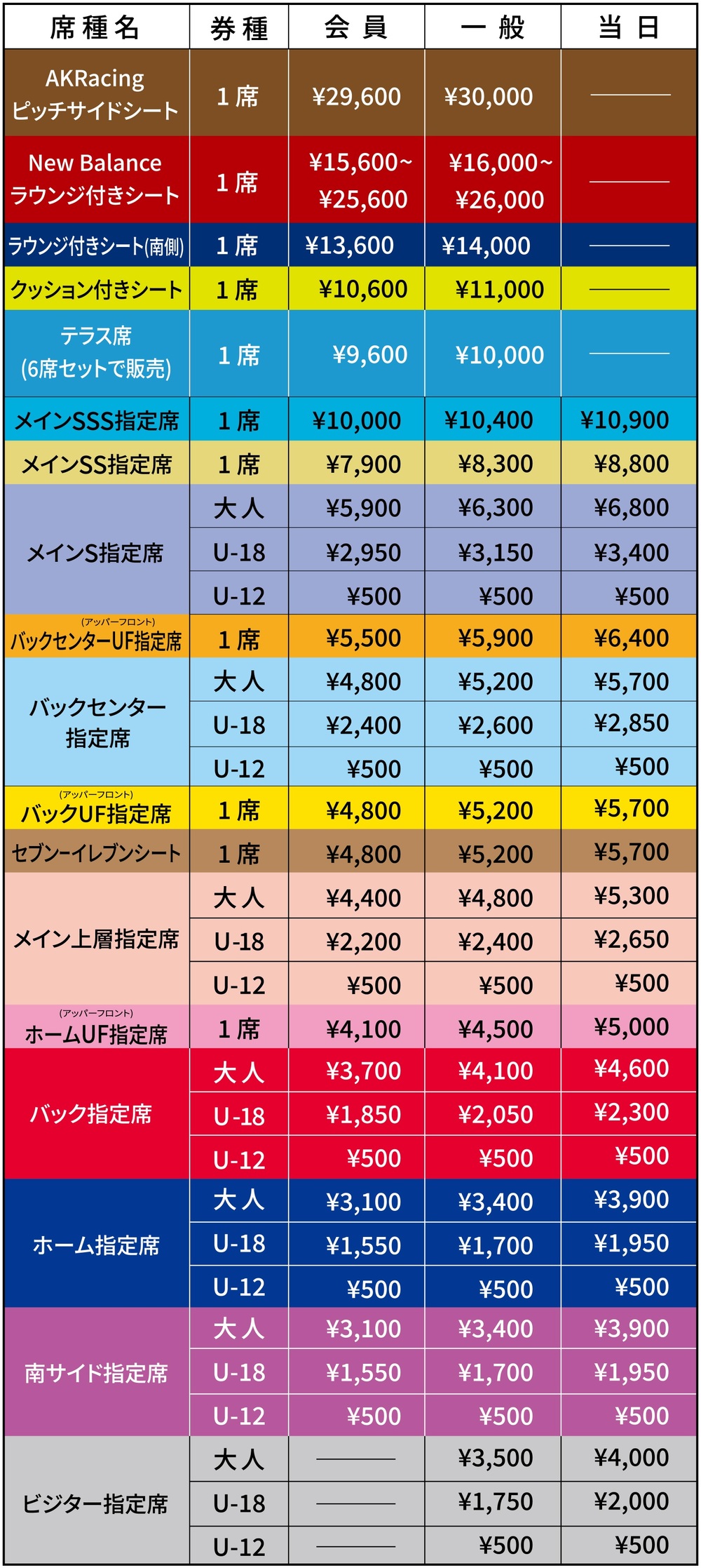 ・在場邊座位區,未就學兒童無法膝上觀賽。請為每位觀眾購買一張座位票,感謝您的配合。