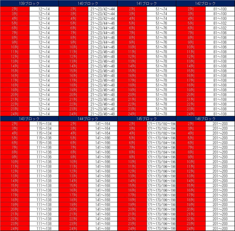 主看台SSS指定席、主看台SS指定席北側(1樓層)、主看台SS指定席南側(1樓層)主看台S指定席北側(1樓層)、主看台S指定席南側(1樓層)