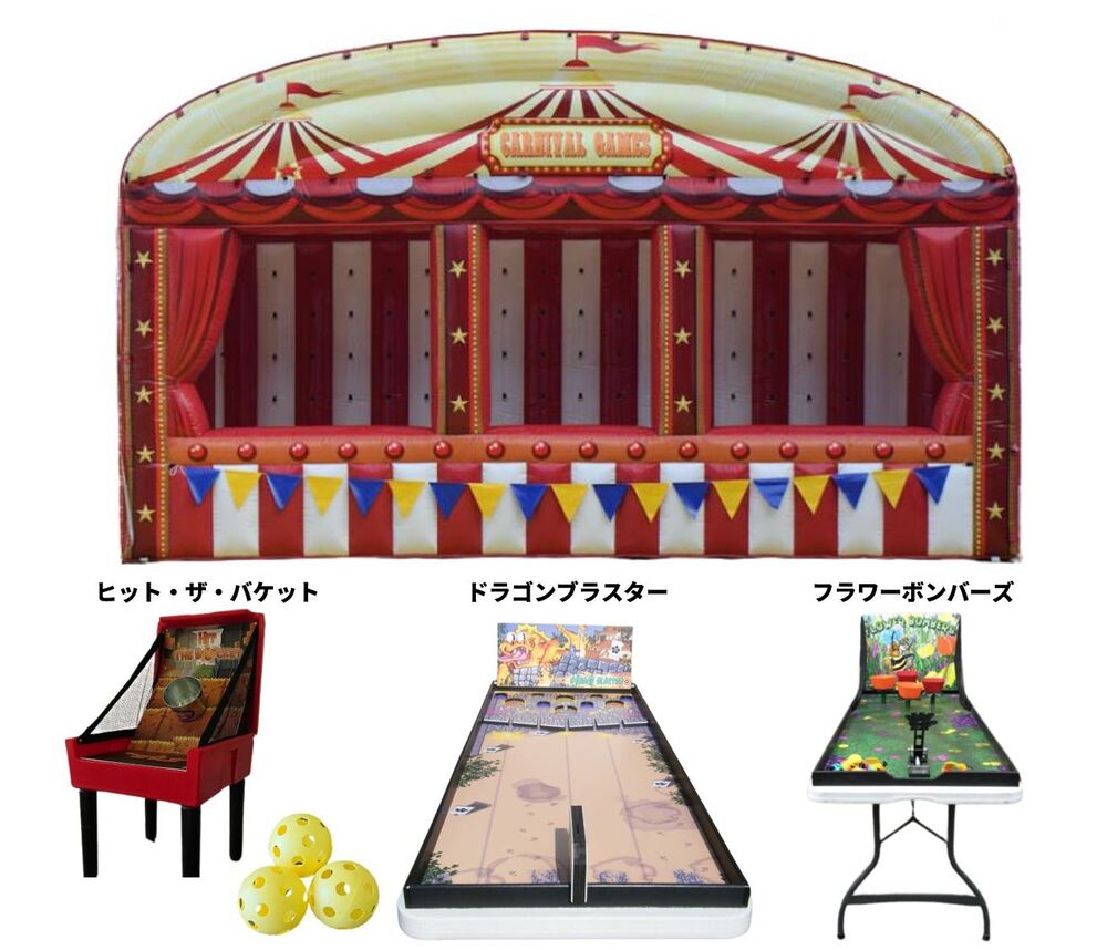 設置了射擊、溜溜球撈取、超級彈珠撈取等縁日常見的各種攤位。