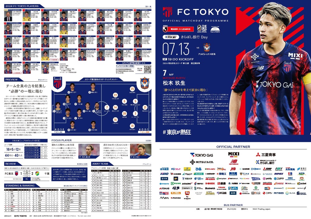 7月13日(周六) 2024明治安田J1聯賽 第23節 vs Albirex新潟(19:00開球/日本國立體育場)的官方比賽日程節目,特此通知如下。