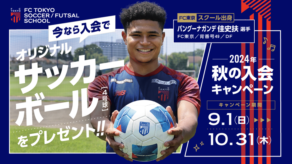 FC東京足球・五人制足球學校將於9月1日(周日)至10月31日(周四)期間舉辦「秋季入會活動」。