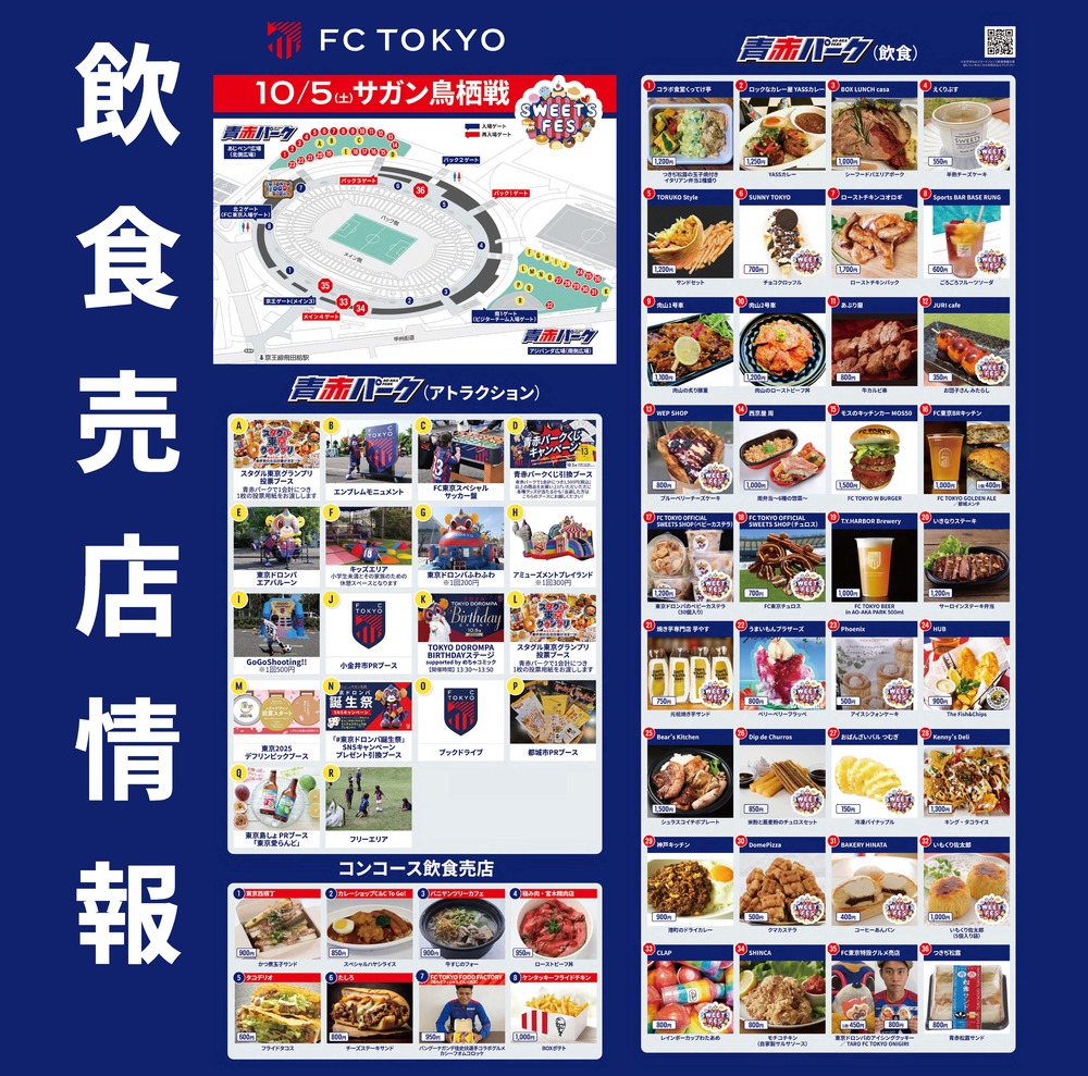 10月5日(周六)Sagan鳥栖戰的AO-AKA PARK(場外)、出張!!AO-AKA PARK、體育館內通道(場內)販賣部販售的飲食資訊通知您。