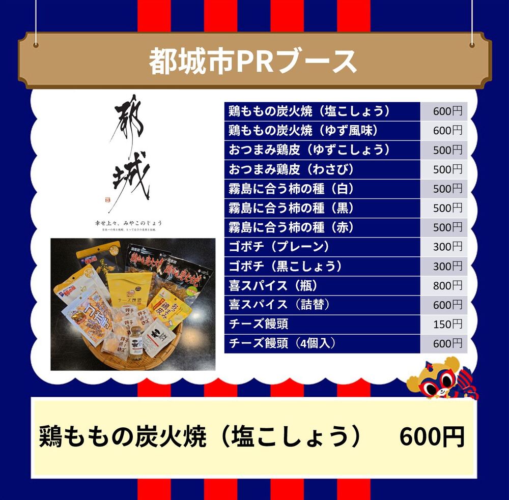 10月5日(周六) 2024明治安田J1聯賽 第33節 vsSagan鳥栖(15:00開球/味之素體育館)將販售與宮崎縣都城市締結全面合作協定的特產。