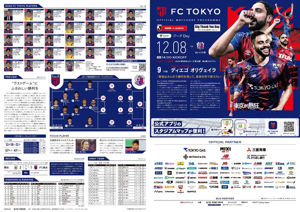 12月8日(周日) 2024明治安田J1聯賽 第38節 vsCerezo大阪(14:00開球/味之素體育館)的官方比賽日程節目,謹此通知如下。
