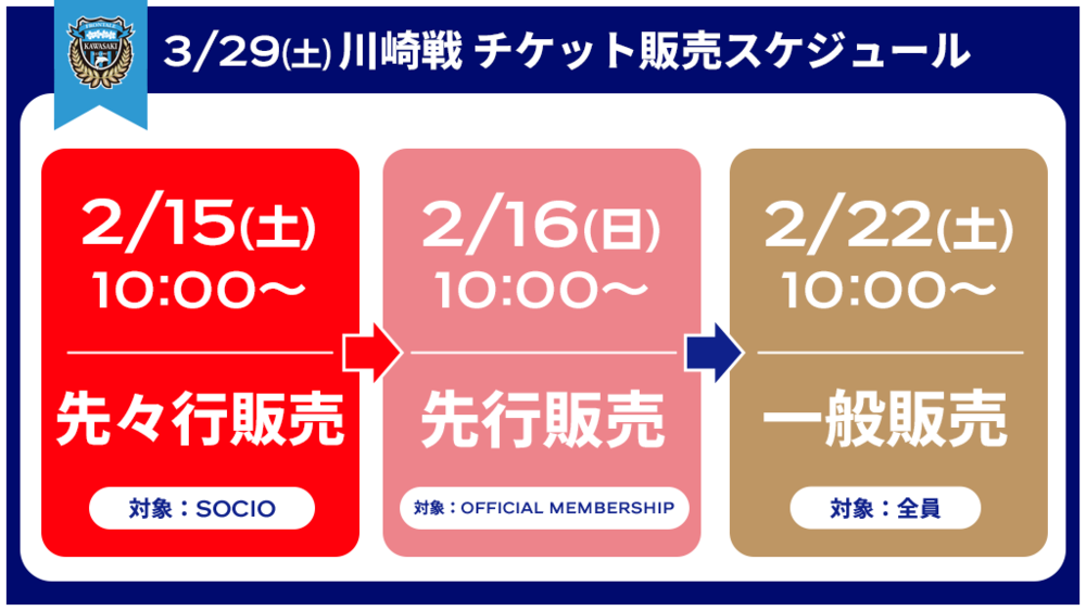3月29日(周六) 2025明治安田J1聯賽 第7節 vs 川崎Frontale(17:00開球/味之素體育館)的門票販售相關通知。