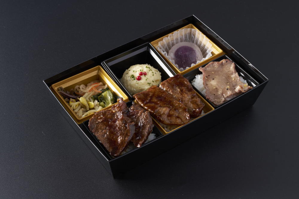 這是可以享用牛舌、黑毛和牛肋條、牛橫膈膜拼盤的豪華便當。