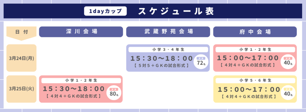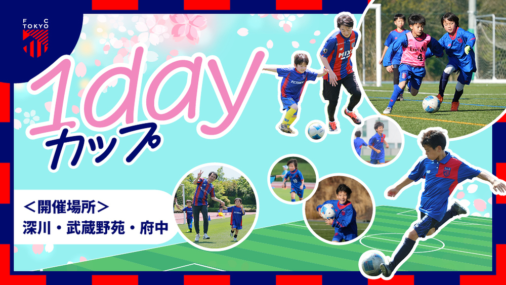 針對小學1~6年級的兒童,春假期間將舉辦提升足球技術的「1day盃」。請把握這個機會,盡情享受在FC東京的足球體驗。