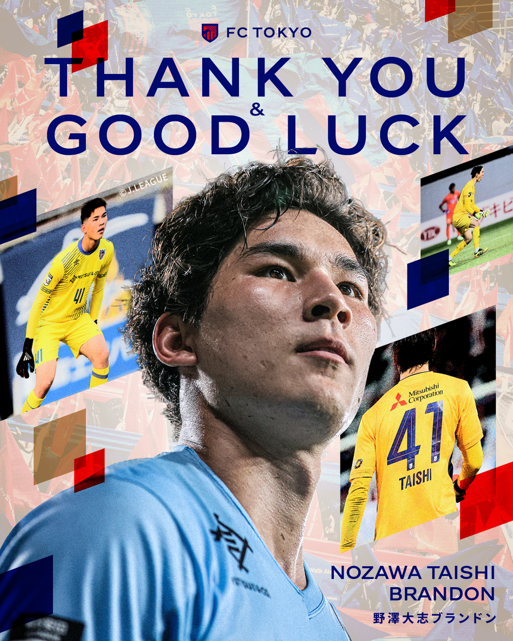 Nozawa選手將於6月28日(周六)的橫濱FC戰後離隊。比賽結束後,隊伍將繞場一周,隨後Nozawa選手將向蒞臨體育場的各位致意。