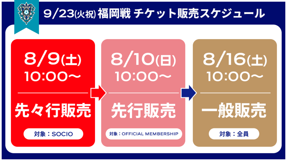 關於2025年9月23日(周二祝) 明治安田J1聯賽 第31節 對戰 Avispa福岡(18:00開踢/味之素體育場)之票券販售的通知。