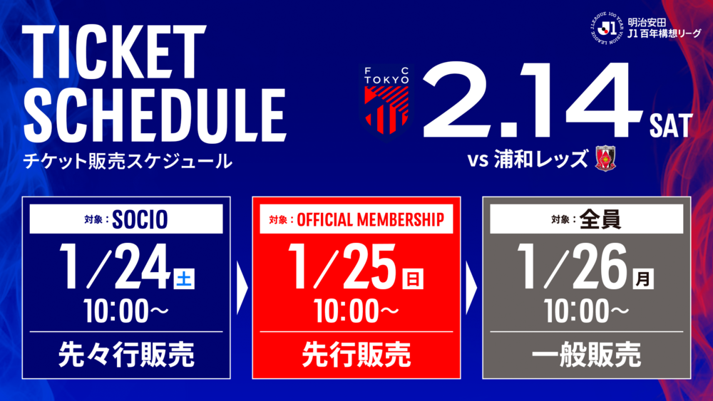 2月14日(周六) 明治安田J1百年構想聯賽 第2節 vs 浦和Reds (15:00開踢/味之素體育館)的票券販售相關資訊。