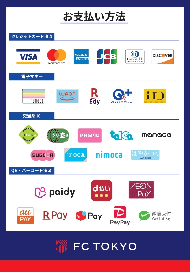 從明治安田J1百年構想聯賽起,主場比賽期間的商品販賣處及扭蛋販賣處將導入完全無現金支付。可使用各種信用卡、電子貨幣及QR碼支付。