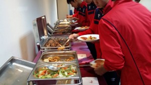 抵達後,毫無飛行疲憊的樣子,精神飽滿地前往飯店,並在俱樂部會所內享用午餐。
