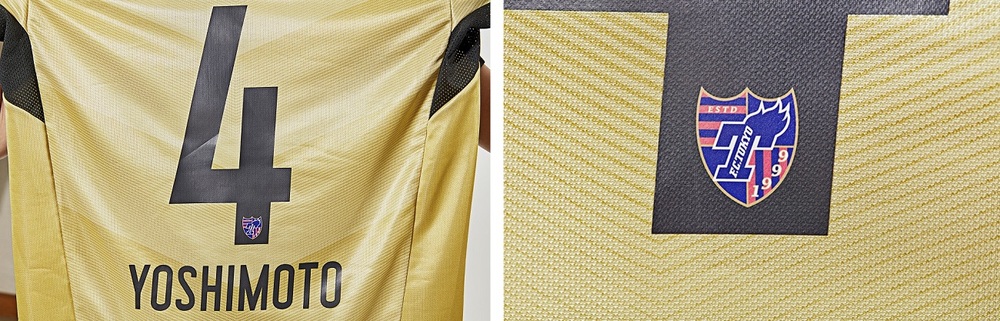 這是徽章上也使用的顏色,以象徵俱樂部更進一步的榮耀與光輝為意象,採用了光澤感的金色為基底,並首次在徽章中採用黑色×金色配色。此外,背號上也首次施以J聯盟俱樂部史上首見的全彩徽章。