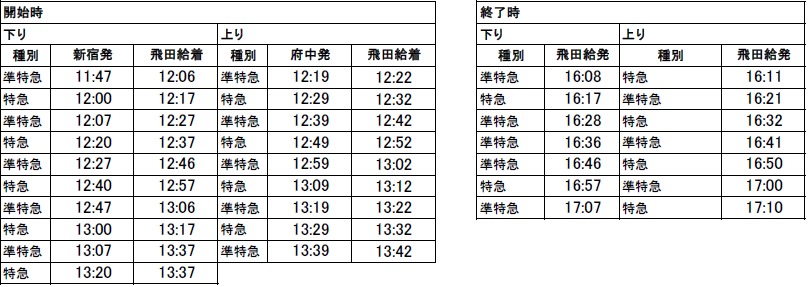 上行…飛田給發16:11~17:10的特急・準特急/共7班