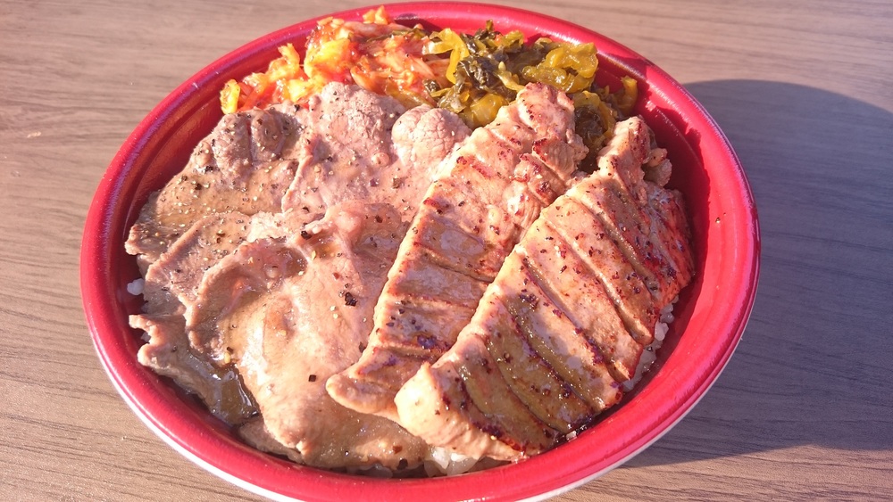 薄切牛舌與厚切牛舌一次享受的超值半半丼。可以享受不同的口感!!
