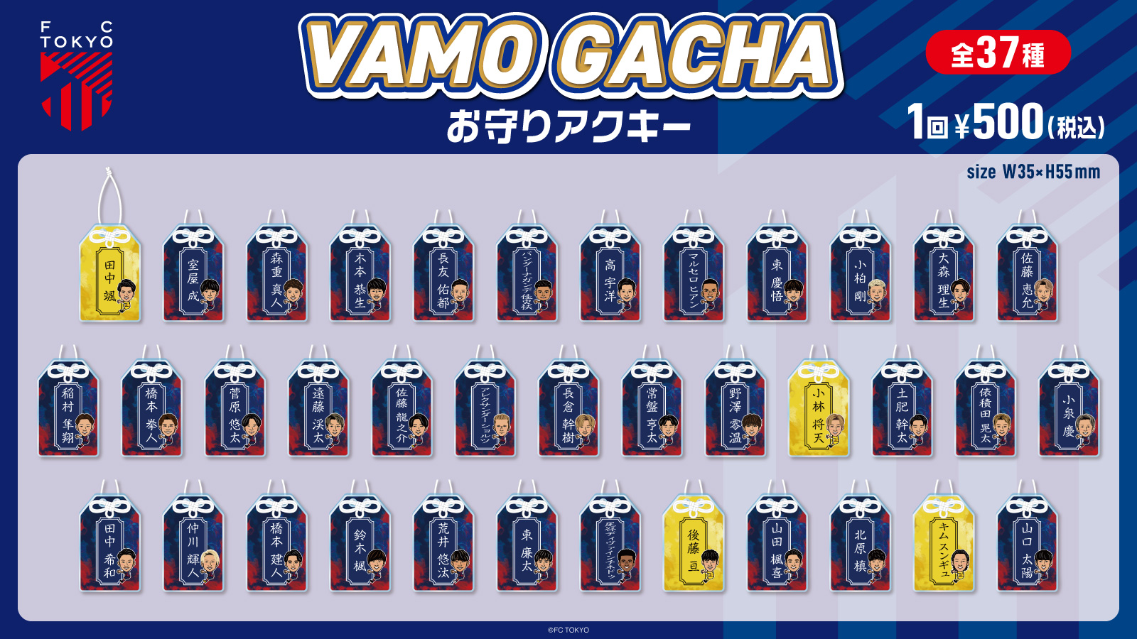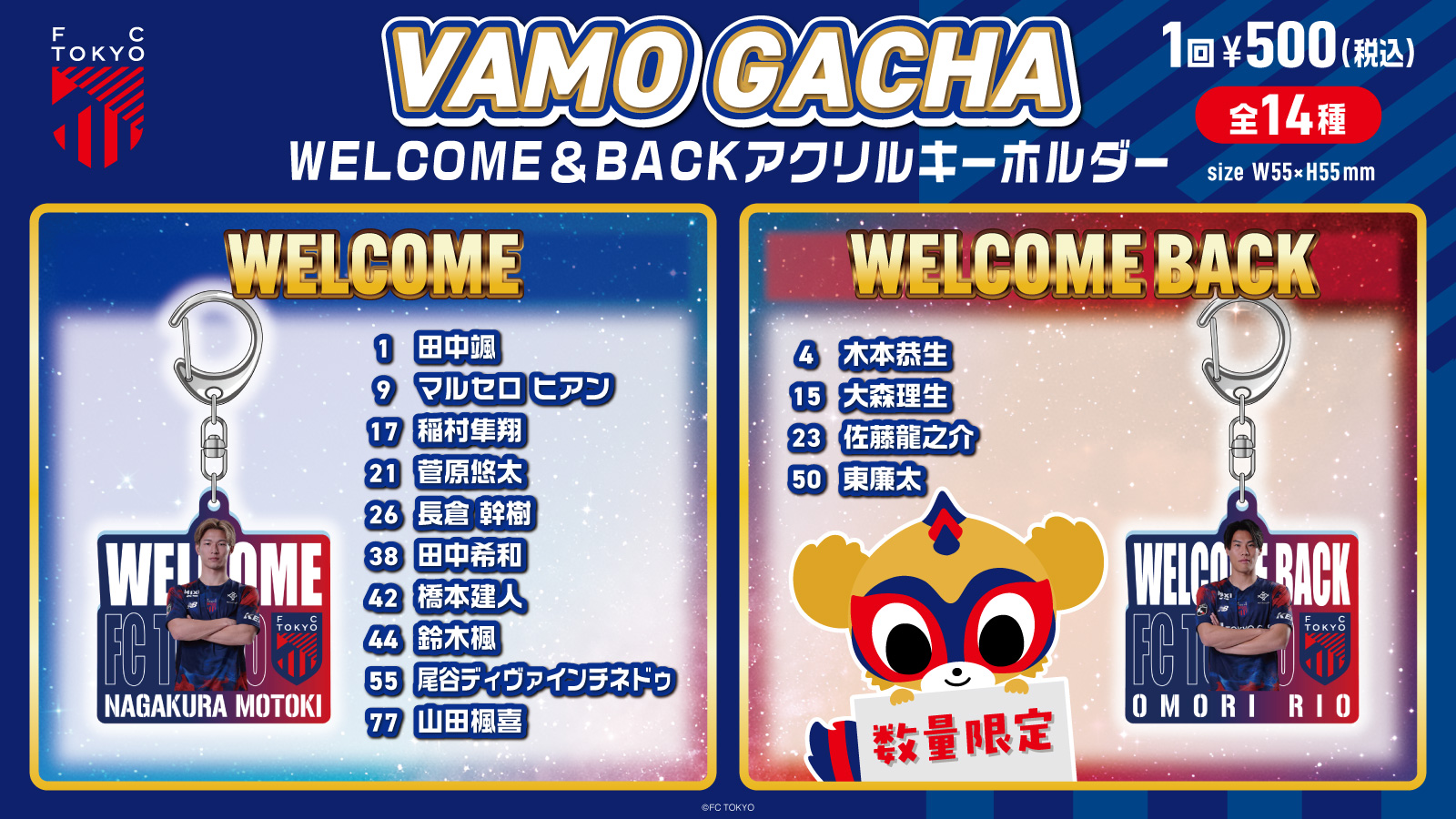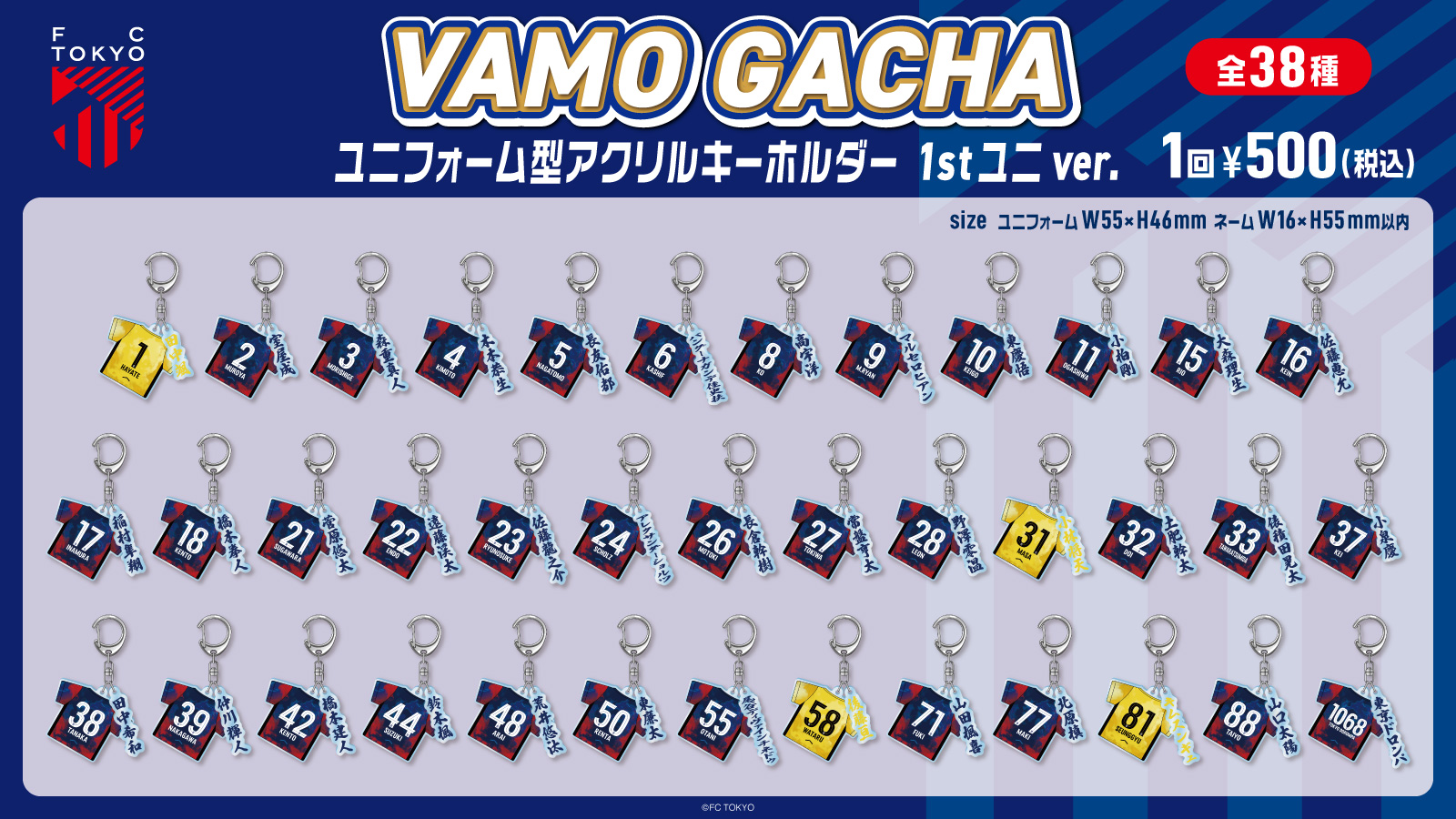 ※球員壓克力鑰匙圈中,#31 小林天選手因拍攝因素,預計於2月28日(周六)柏Reysol比賽時販售。