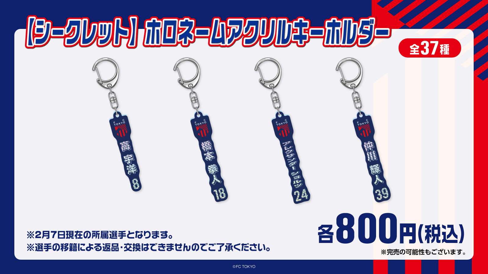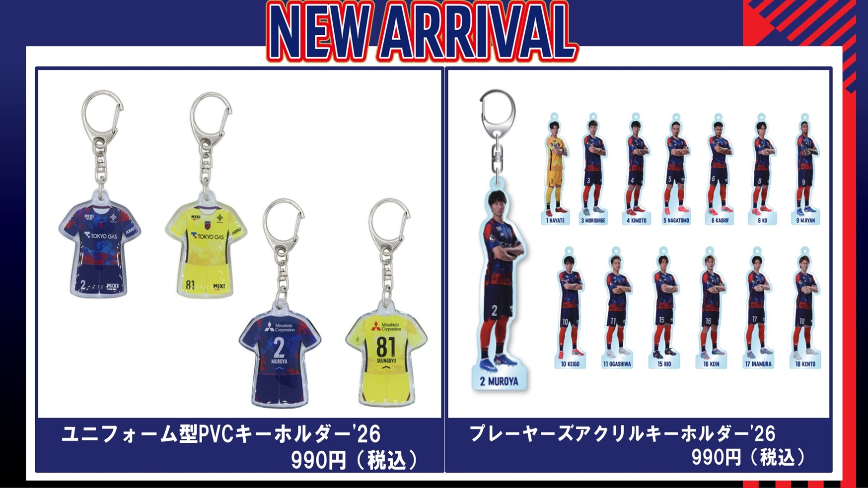 ※球員壓克力鑰匙圈中,#23 佐藤龍之介選手、#39 仲川輝人選手因拍攝因素,預計於2月14日(週六)浦和Reds戰時販售。