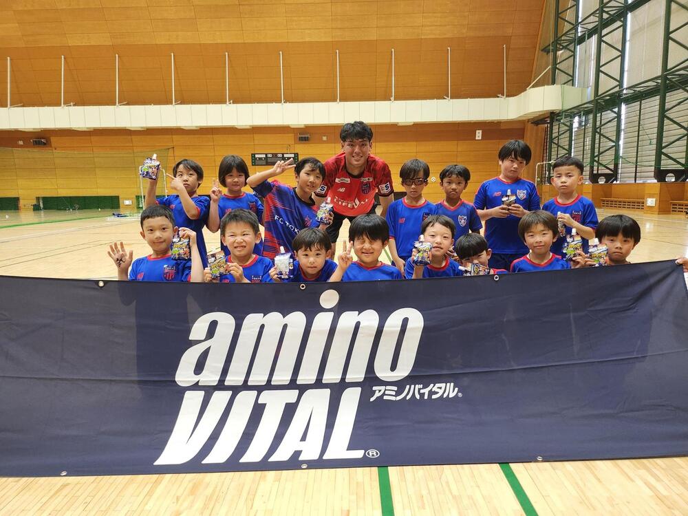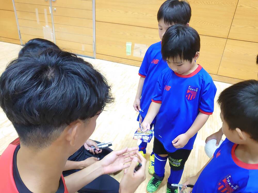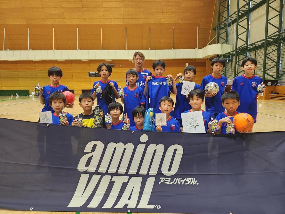 最後請告訴孩子們「享受足球並交朋友吧!」,並為每個人簽名,還分送了由味之素株式會社提供的氨基活力飲料果凍Guts Gear♪