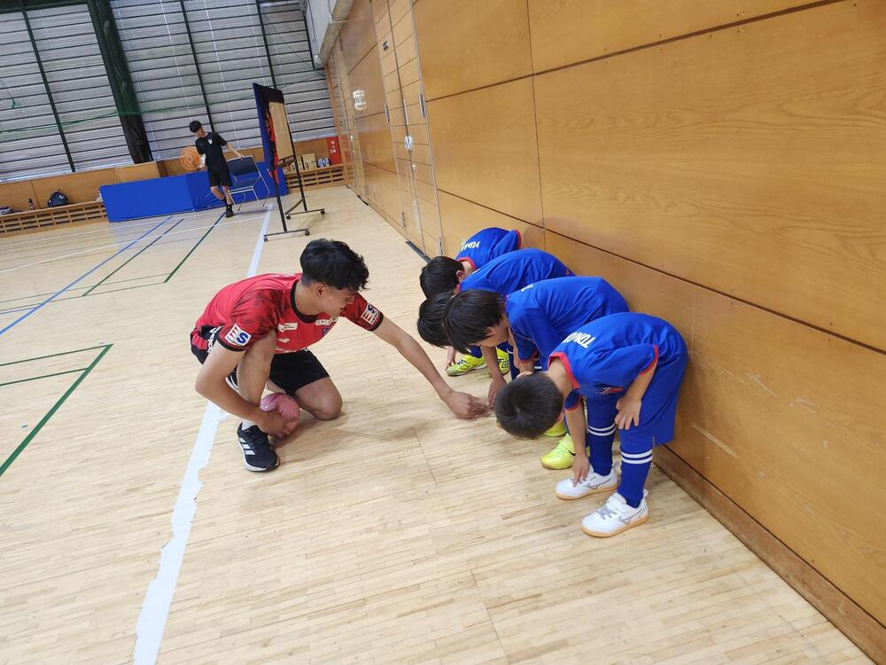 對於學校學生提出的「為了跑得更快,你在做什麼?」這個問題,白井康介選手親自行動並給予建議,還細心且詳細地教導對方如何防守,包括如何搶球等技巧!