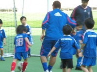 「コーチの言うことをよく聞いてがんばって練習すれば、きっとみんなもこの(味スタの)ピッチに立てるぞ!」と激励してくれた藤山選手。そんな優しい藤山選手を「フジヤマー!」と声をそろえて呼びすてにする小学新1年生たち!!(笑)